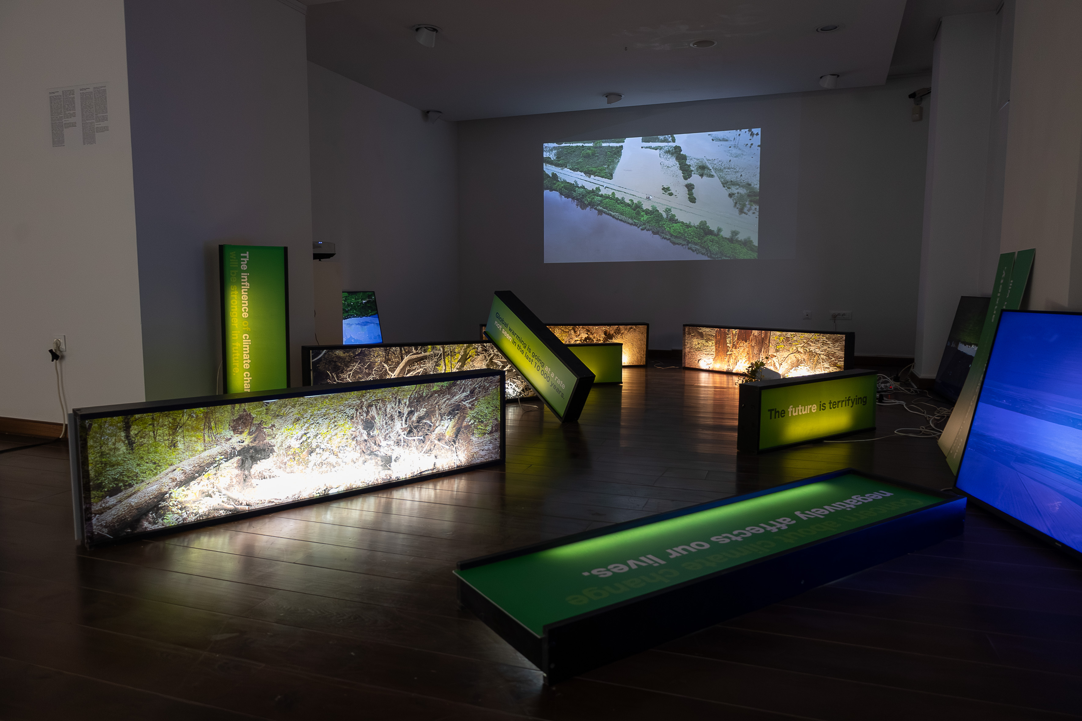 La mostra Paesaggi nascosti presenta le opere di Davor Mezak e Darija Jelinčić, intrecciando paesaggi personali e collettivi dell’epoca contemporanea. Nei cicli Solastalgia e Top Secret, Mezak indaga l’ansia dei cambiamenti climatici e la fragilità delle strutture sociali, mentre Jelinčić, nella serie fotografica Escapes, cattura momenti intimi di rifugio e libertà. Il titolo della mostra allude a strati nascosti di emozioni, memorie e tensioni sociali, che si rivelano soltanto attraverso lo sguardo dell’artista e dello spettatore.